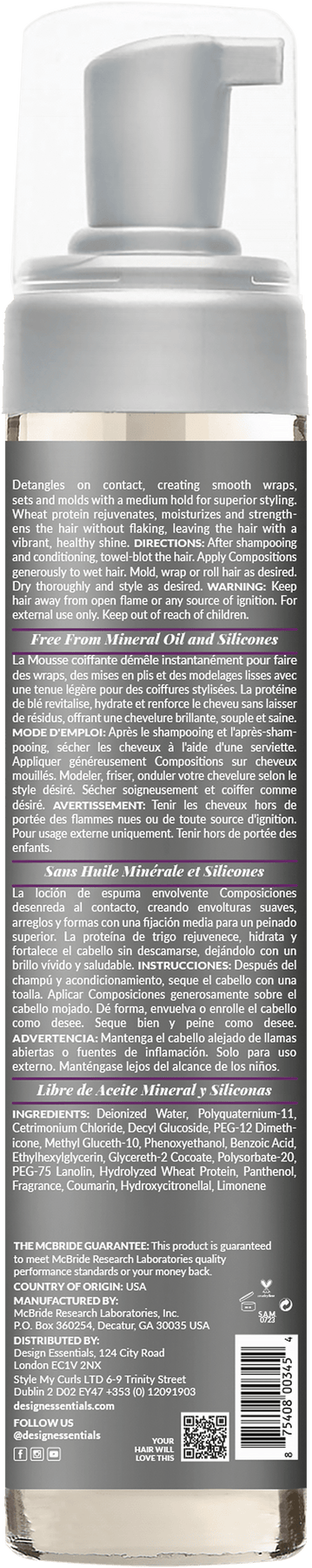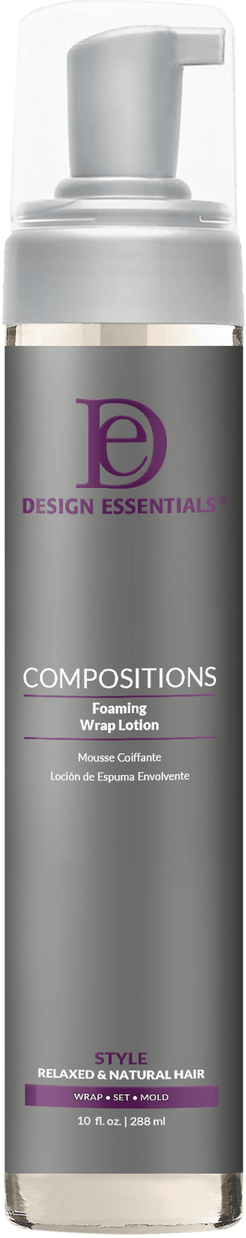 For easy wet styles, it’s a wrap. The Design Essentials® Compositions Foaming Wrap Lotion is a lightweight foaming mousse that delivers a pliable medium hold. It’s infused with wheat protein to moisturize, nourish and strengthen your hair during the wet styling process. Detangle, set, and get the beautiful, silky style you’re after.