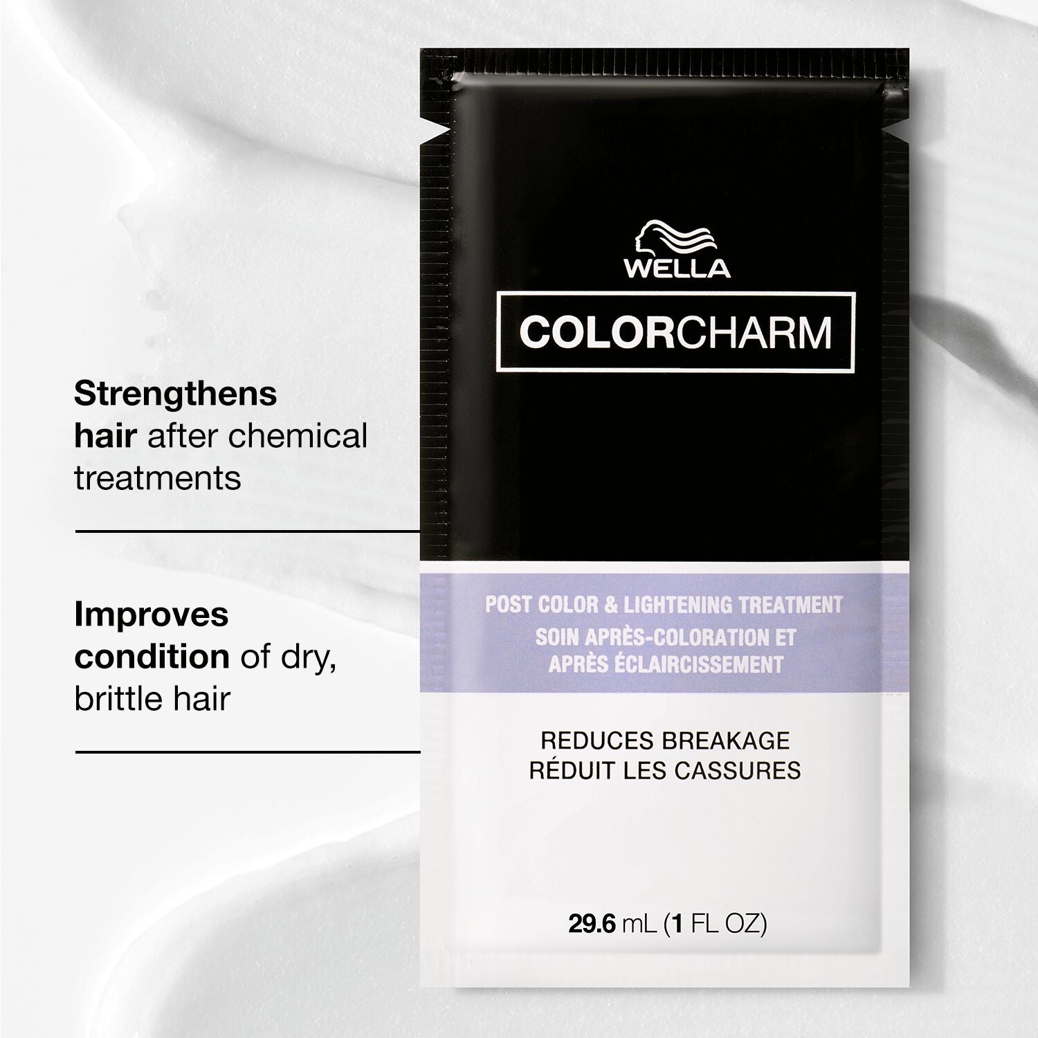 Bid farewell to damage with our ultimate color companion. Wella colorcharm Post Color & Lightening Treatment conditions, adds shine and strengthens hair after chemical treatments, providing up to 90% less breakage*.