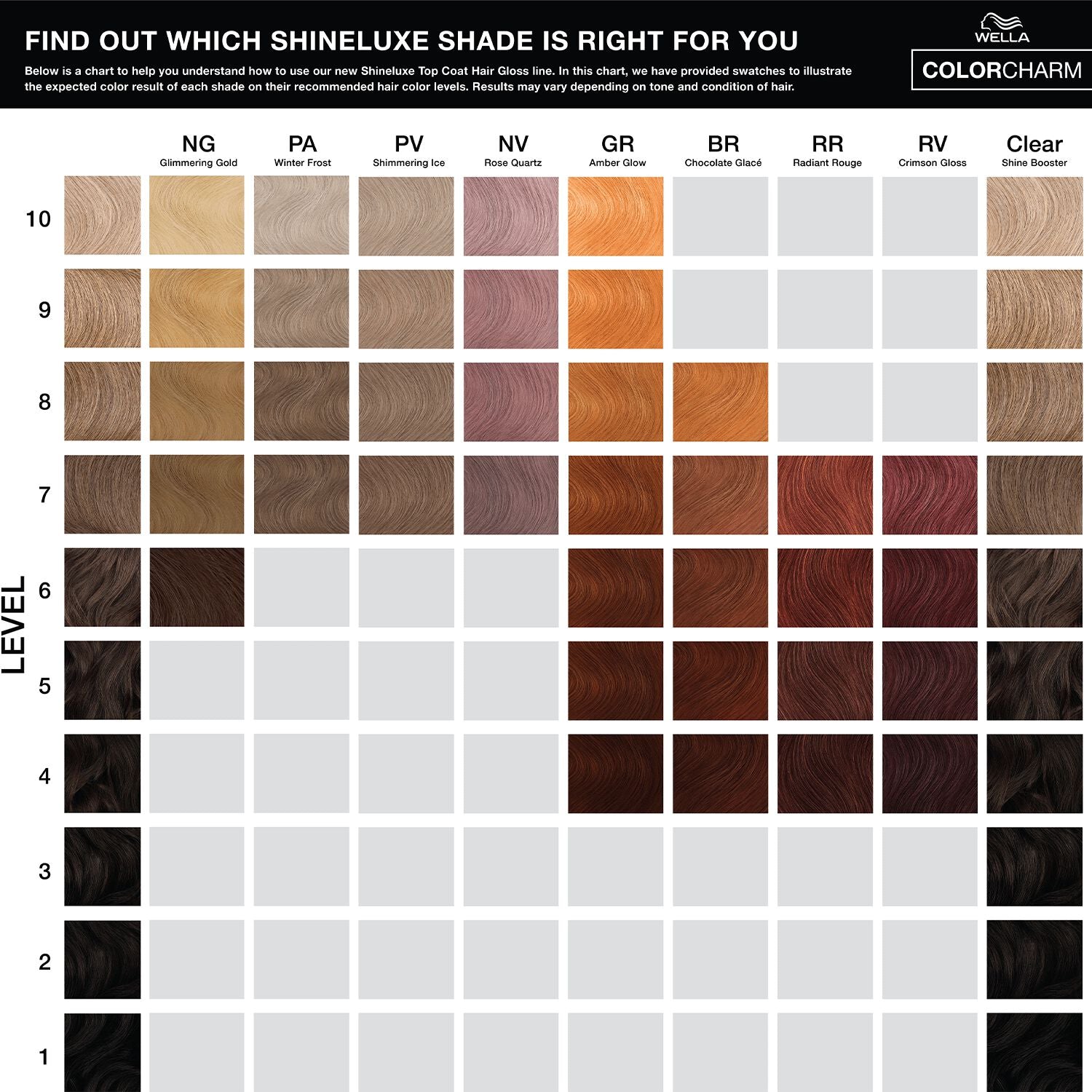 For best results use the recommended usage instructions on your WELLA COLORCHARM ShineLuxe Top Coat Hair Gloss product.