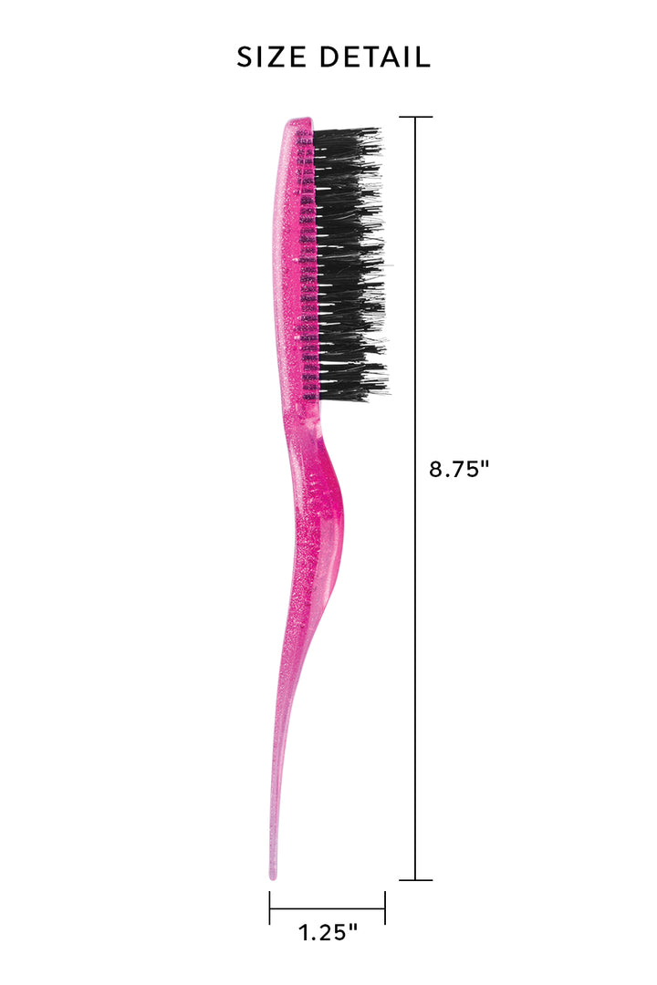 Designed for up-do and big volume (prom, weddings, formal events, cheer, etc.), the unique bristle pattern minimizes damage. Super soft boar bristles mixed with nylon bristles let you amp up your hair to the maximum teasing height.