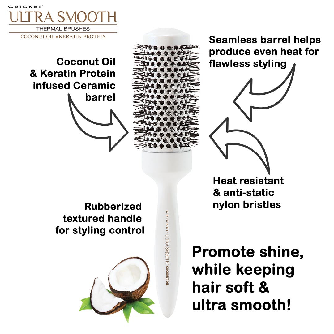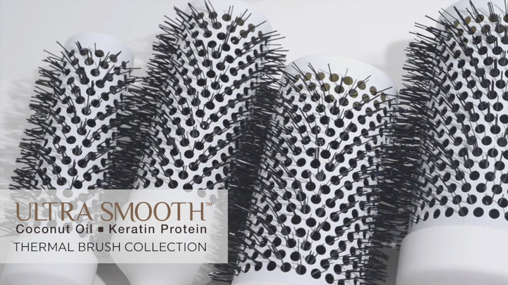 The award-winning, best-selling, Ultra Smooth Collection is has expanded into thermal brushes that deliver beautiful body results. Each seamless ceramic barrel has been infused with Coconut Oil and Keratin Protein that helps improve hair styling manageability and promotes shine.