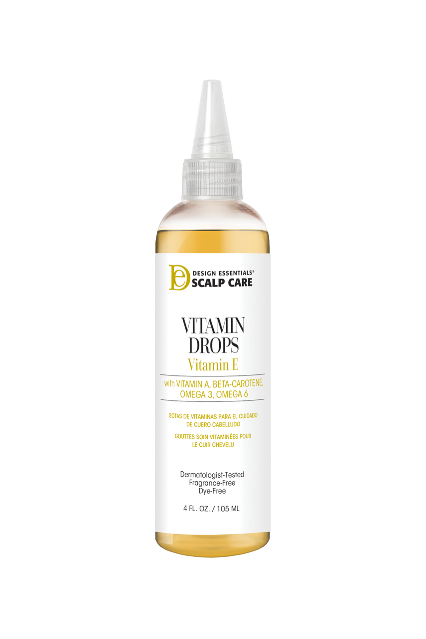 Scalp issues? Solved. Keep your hair's foundation right with our Design Essentials® Scalp Care Vitamin Drops with Vitamin E. It nourishes the scalp while providing moisture to help promote a healthy scalp and hair growth. Vitamins A and D3 work alongside vitamin E to restore and re-up nutrients depleted by your everyday environment. Just a few drops and you're on your way to begin beautifully.