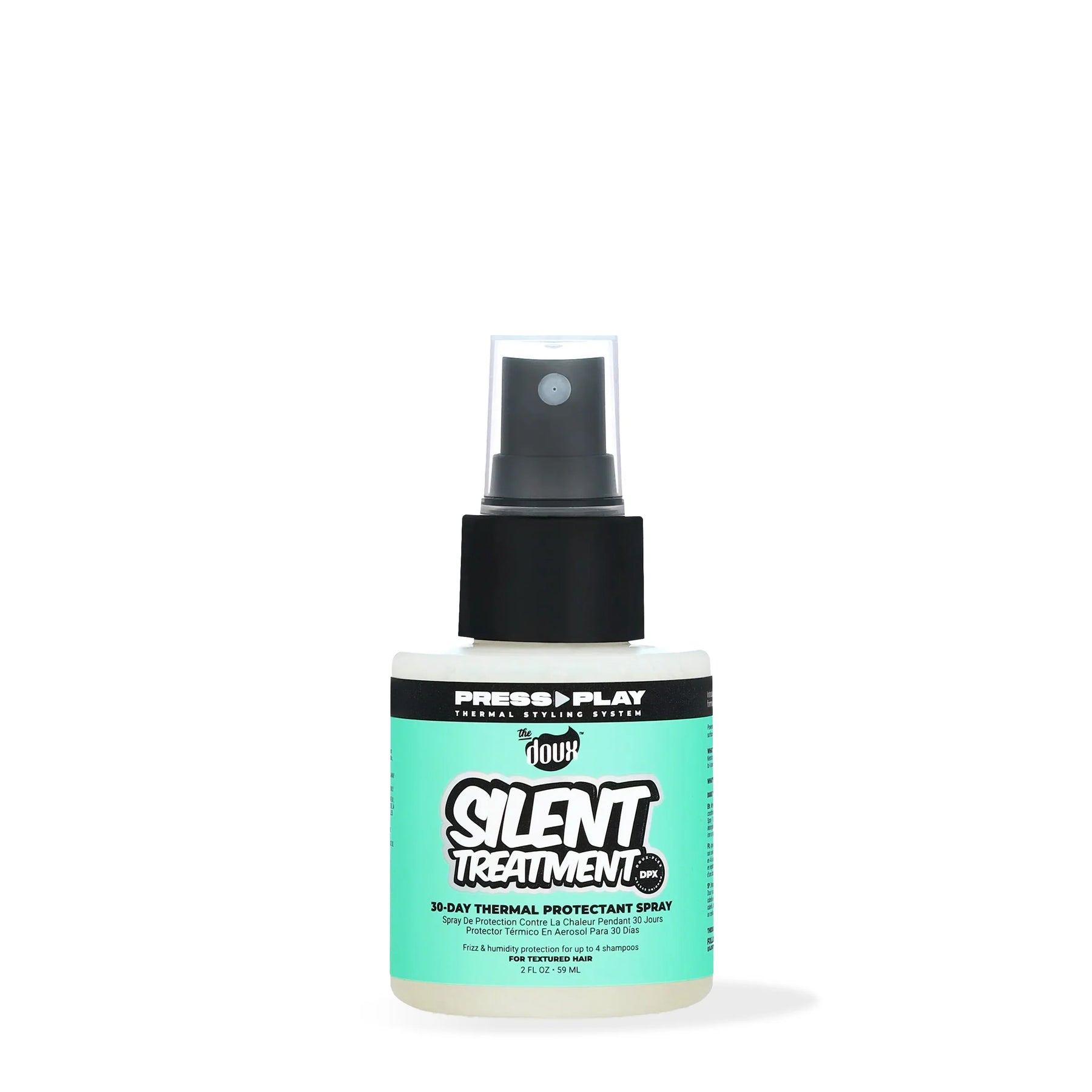 SILENT TREATMENT is your silk press insurance! This heat-activated frizz defender, infused with Keratin and advanced strand-sealing tech, keeps hair sleek for up to 30 days or 4 shampoos. Salon emergencies? Handle that ish like a pro!